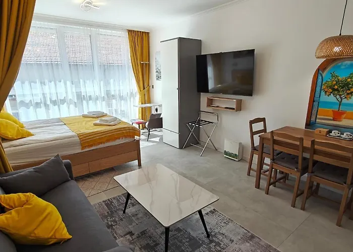 Gasten die in Vivid Sea And City Luxury Studio 2 Plus 2 verblijven, kunnen profiteren van voorzieningen, zoals een ingerichte kitchenette, evenals een eetgedeelte. Aleksandrovska bushalte is een paar momenten van Vivid Sea And City Luxury Studio 2 Plus 2 gelegen. The apartment provides guests with een terras.